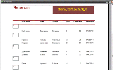 Кнопка «Читатели» выдаёт отчёт о всех читателях библиотеки, в котором
