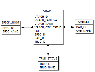Таблица VRACH связана с таблицами CABINET,