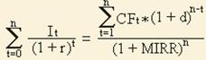 Формула для расчета модифицированной внутренней нормы доходности (MIRR):