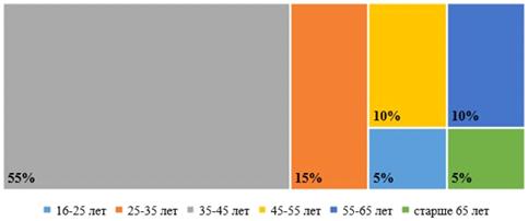 Рис. 2.8 Возрастной состав клиенток косметологического кабинета салона