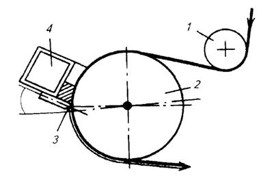 паста, а гибкий шабер образует днище лотка, снимая с полотна, выходящего из