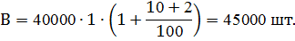 где В-годовая программа выпуска с учетом запасных частей и возможного брака, шт.;- годовая программа выпуска, 40000 шт.;- количество данных деталей в узле, 1 шт.;