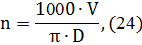 - скорость вращения детали, м/мин;