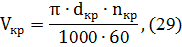 - скорость вращения круга, м/с;