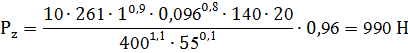 - окружная сила резания при фрезеровании, Н;