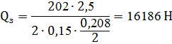 - сила, действующая на прихват, от рычага, Н;