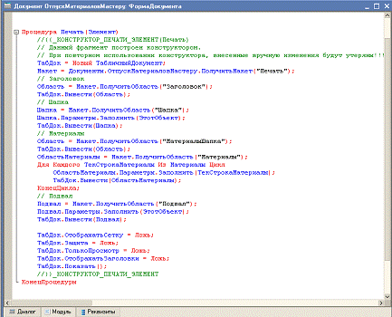 формы есть программный модуль. Кроме того, есть программные модули документов и