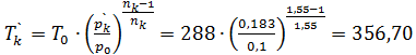 nk = 1.55 - показатель политропы в надувочном компрессоре.