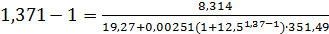 Уравнение решается методом последовательных приближений. Задаваясь любым значением n1 из указанных пределов его значений n1=1,35…1,38, добиваемся равенства левой и правой частей уравнения. Достаточная точность схождения ∆≤0,001.