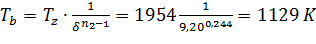 Принимаем n2 = 1,244, Тb = 1129 К.