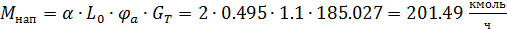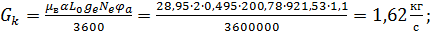 Часовое количество свежего заряда, участвующего в процессе наполнения:
