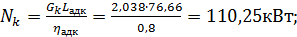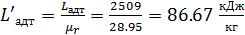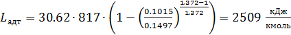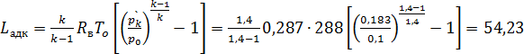 Удельная адиабатическая работа сжатия воздуха в компрессоре: