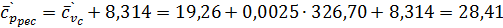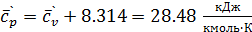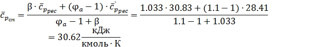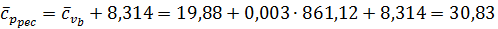 Средняя молярная изобарная теплоемкость продувочного воздуха в ресивере: