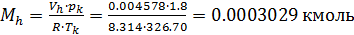 Количество рабочего тела в рабочем объеме при pk и Tk: