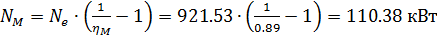 Некоторая часть индикаторной мощности, развиваемой в цилиндрах двигателя, расходуется в самом двигателе на собственные нужды и не может быть использована потребителем. Эту мощность называют мощностью механических потерь NM, кВт. Данная мощность расходуется на преодоление трения, привод всех вспомогательных механизмов, обеспечивающих нормальную работу двигателя, и на осуществление процессов газообмена.