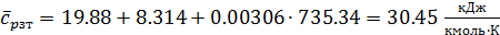 Средняя молярная изобарная теплоемкость отработавших газов в ресивере: