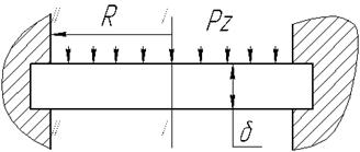 Рассматриваем днище поршня как пластину, защемленную по периферии, равномерно нагруженную.