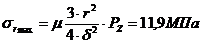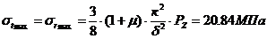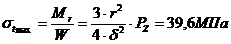 напряжения на периферии и центре днища поршня: