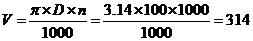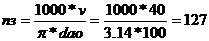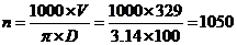 n = 1000 ´ 118 / ( 3.14 ´ 90 ) = 417 об/мин