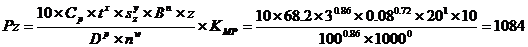Pz = 10 ´ 204 ´ 21.0 ´ 0.80.75 ´ 1180 ´ 1.22 = 4210 H