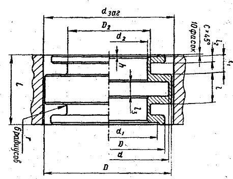 ) Число гофрированных втулок оправки: n=2, если 2L<l3, n=1, если 2L >lзаг