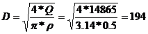 После округления до ближайшего большего нормального размера, получим окончательно D = 275 мм.