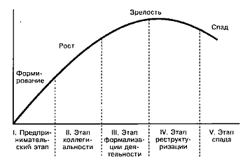 Рисунок 3. Пять этапов в жизненном цикле организации.