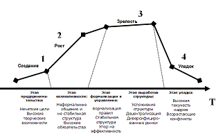 . Стабильное функционирование. На данном этапе все участники компании уже точно знают распределение своих обязанностей и порядок работы, достигая необходимых результатов при уже выработанной автономии действий. Данный этап является наиболее продолжительным и результативным.