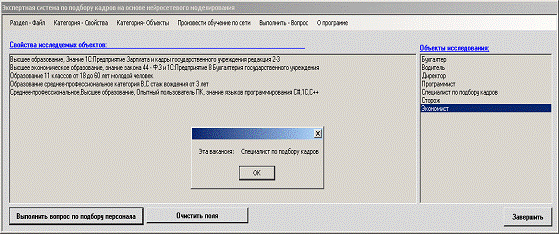 1. Описание экспертной системы по подбору кадров