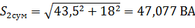 мощности S2сум=27,505 ВА, следовательно,