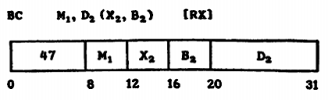 Продвинутый адрес команды в текущем PSW замещается адресом перехода, если значение признака результата соответствует коду, указанному в поле M1; в противном случае продолжается обычное последовательное выполнение команд с использованием продвинутого адреса.