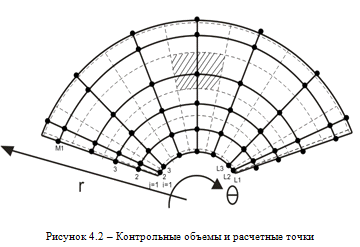 Программа разработана для полярной системы координат θ - продольная координата, y,r - координаты в радиальном направлении. Разница между ними