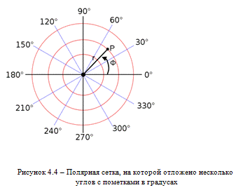 координатами: радиальной и угловой. Радиальная координата (обычно обозначается r) соответствует расстоянию от точки