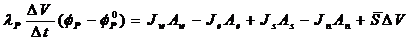 формуле (4.1) верхний индекс «0» обозначает известное значение φ в начале шага по времени Δt; J - плотность диффузионного потока через грань