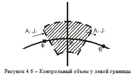 На рисунке 4.6 показана окрестность граничной точки (i,j). Грань контрольного объема при i = 2, совпадающая с левой границей области, может