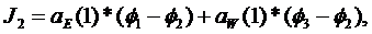 J2 через его левую грань, а не на (4.19). В результате коэффициенты aW(2) и aE(2) записываются в виде: