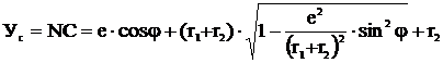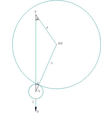 φ - угол поворота KN от вертикали (см. рисунок 3.2), равной ω·t, где, в свою очередь, ω - угловая скорость вращения вала 1, t - время;- радиус обоймы 2;- радиус ролика 4.