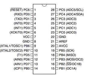 семейства MEGA - ATMega8. Имеет удобный для разводки платы и пайки корпус DIP. Расстояния между ножками