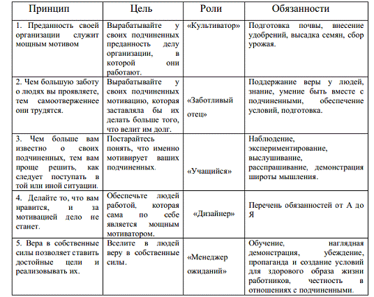Руководитель должен быть примером, ролевой моделью, показывая пример такого отношения к делу, такого поведения, которые предполагается закрепить и развить у подчиненных.