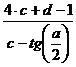 {c,d,a; double x;("Vvedite a\n");("%d",&a);("Vvedite c\n");("%d",&c);("Vvedite d\n");("%d",&d);=(4*c+d-1)/(c-(tan(a/2)));("%lf",x);