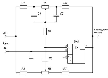 В качестве входного усилительного каскада используем ОУ с инвертирующим входом. Входной каскад содержит активный регулятор тембра. Схемотехническая реализация регуляторов частотных характеристик базируется на свойствах усилителей с глубокой обратной связью по напряжению.