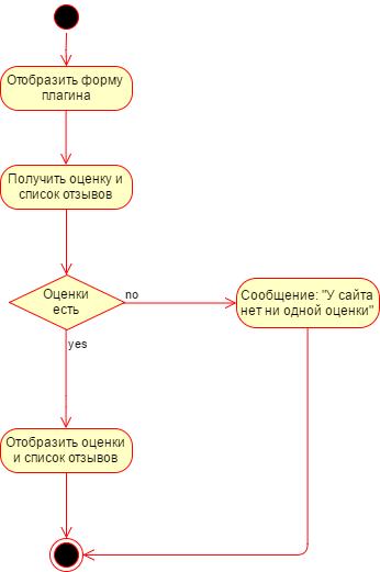 Изображенная диаграмма демонстрирует каким образом пользователь может просмотреть отзывы и оценки. Как видно по рисунку для того, чтобы пользователь смог просмотреть оценки, сайт уже должен быть оценён. В том случае, если оценок нет, то просматривать будет нечего, и пользователь может стать первым, кто оставит отзыв и поставит оценку.