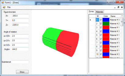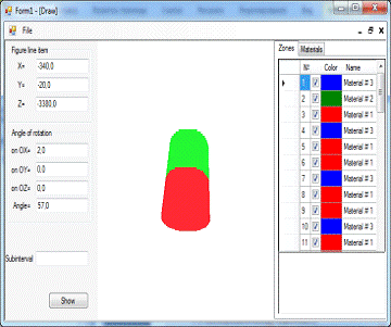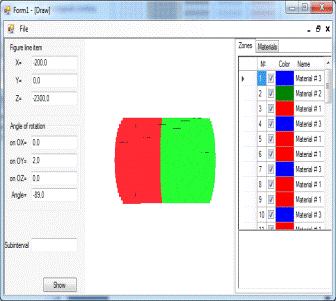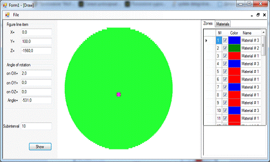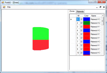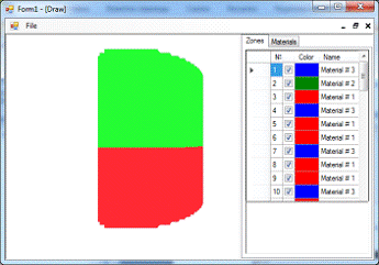 Вкладка «Материалы» вызывает апплет «Таблица зон», который позволяет пользователю самостоятельно задать цвета для различных материалов