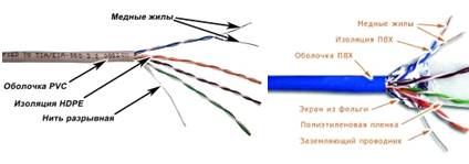 Витая пара [2] - это скрученная пара проводов. Провода скручиваются для того чтобы уменьшить влияние внешних и взаимных помех на полезные сигналы, которые передаются по кабелю. Существует экранированная и неэкранированная витая пара.