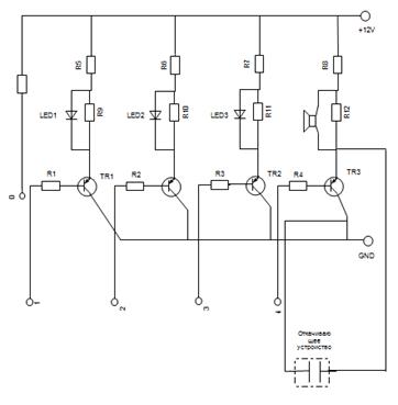оранжевого и красного цветов) и динамик сигнализирующий о поднятии уровня в