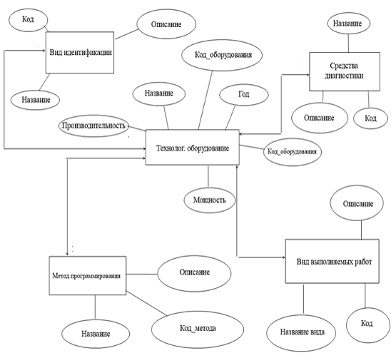 Инфологическая модель базы данных технологического оборудования для сборочно-монтажных работ представлена на рис. 2.1.