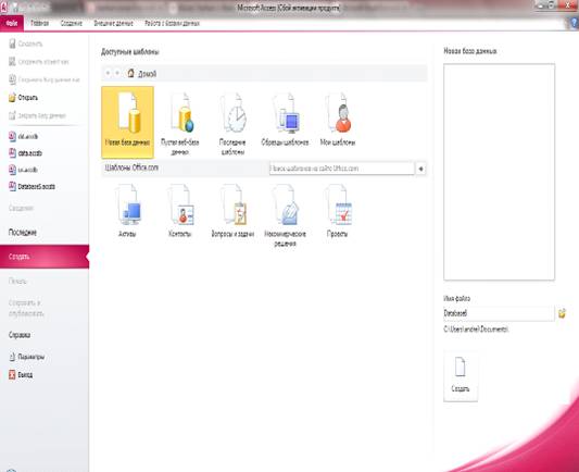 Главное окно программы Microsoft Access 2010