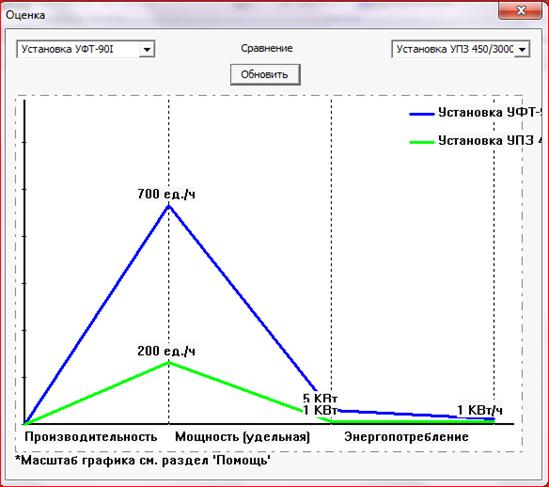 просмотр графиков сравнения нескольких технологических оборудований;