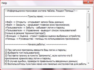 Рисунок А.6 - Окно «Помощь» информационно-поисковой системы