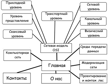 Информационный Web-сайт "Модернизация компьютерной сети" имеет следующую карту сайта (Рисунок 1):